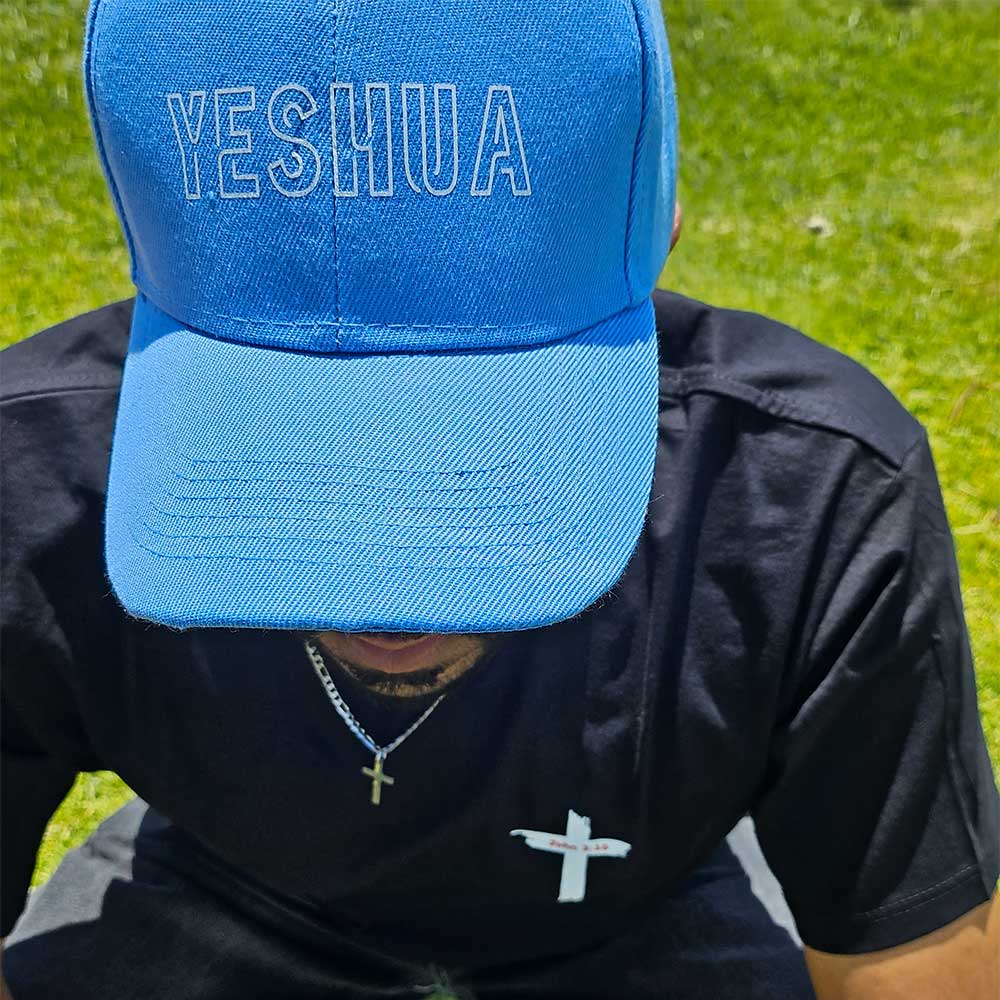 A bold yet minimal reminder of the name above all names. Our Yeshua cap keeps your faith front and centre with clean lettering and a timeless look. Available in black and sky blue, one size fits all – perfect for everyday wear and quiet proclamation.